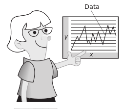 This features a cartoon drawing of a woman pointing at a graph, which is likely related to data. She appears to be explaining the concept or providing information about the graph. The woman's facial expression suggests that she might be smiling or making a funny face while pointing at the graph. The scene takes place in front of a whiteboard, which further emphasizes the educational context of the image.