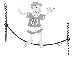 This features a cartoon boy wearing a jersey with the number 1 on it, standing on top of two parallel ropes. He appears to be balancing himself skillfully between the two poles. The scene is set against a white background, which emphasizes the contrasting colors of the boy's outfit and the ropes. This illustration could represent an athletic achievement or simply showcase the boy's ability to maintain balance on a challenging surface.