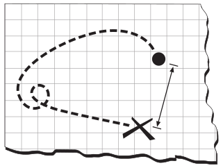 This features a white board with a black arrow pointing towards the center of the board. In the middle of the board, there is an orange circle that appears to be a target or a point of interest. The arrow's direction suggests that it might be guiding someone towards this central point. This could be a part of a game or a learning activity where participants need to follow the arrow and reach the center of the board.