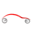 This is a close-up of an automotive wheel with a red line on it. The red line appears to be drawn in the shape of a curved arrow, pointing towards the front of the wheel. This could possibly represent a warning or caution sign for drivers. The wheel itself has two silver hubcaps, which are attached to the outer rim of the tire. Overall, the image showcases an automotive component with a distinct red line and silver accents.