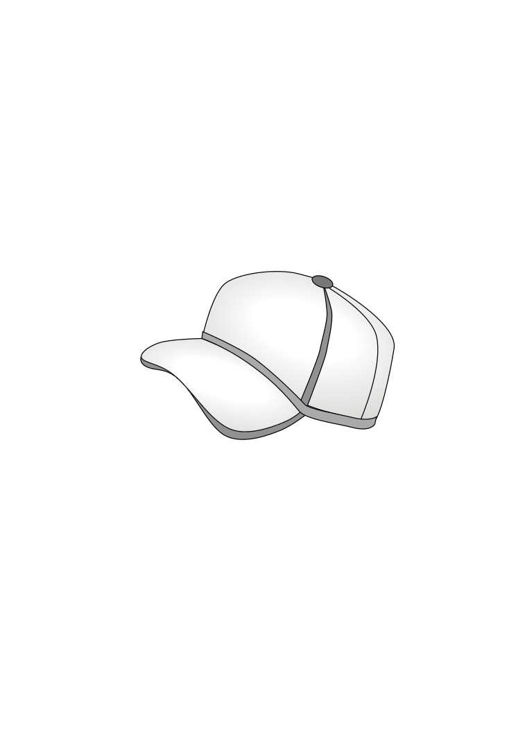 This features a white baseball cap with a black strap. It is an illustration of the hat, which appears to be made of plastic or another lightweight material. The cap has a simple design and is likely used for sun protection or as part of sports attire. The hat's shape is slightly curved, giving it a classic baseball cap appearance. Overall, the image showcases a clean and minimalistic representation of this everyday accessory.