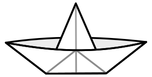 This features a simple, yet elegant, paper boat design. It is a black and white drawing of a sailboat with an open top, giving it the appearance of being ready to set sail. The boat's shape is reminiscent of a traditional sailboat, but its size is smaller than one would expect from a real-life vessel. This paper boat design could be used for various purposes such as decoration or even as a fun project for children to engage in.