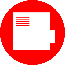 This features a red circle with white text, which appears to be an icon or logo. Inside the red circle, there is a picture of a printer or a piece of paper, possibly representing a document or a booklet. This design could be used for various purposes such as branding, advertising, or even educational materials. The simplicity and boldness of the red color make it easily recognizable and memorable.