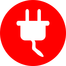 This features a red circle with an icon of a power plug inside it. This icon is likely used to represent electricity or electrical outlets, and the white cord symbolizes the connection between the plug and the socket. The simplicity of this design makes it easily recognizable and versatile for various applications.
