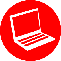 This features a red circle with the outline of an open laptop computer. The laptop is depicted in white, giving it a clean and modern appearance. The design of the icon suggests that it could be used to represent technology or digital devices. The simplicity of the image allows for easy recognition and understanding of the concept being portrayed.