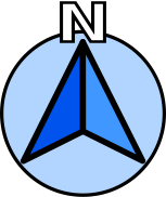 This features a blue and white compass with the letter N in the center. The compass is surrounded by a circle, giving it an interesting appearance. The design of the compass is simple yet visually appealing, making it stand out as a unique symbol.