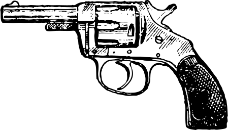 This features a black and white drawing of an old-fashioned revolver. It is a close-up view of the gun, showcasing its details such as the barrel, grip, and trigger. The revolver appears to be made from metal, giving it a classic and vintage appearance. The drawing captures the essence of an antique firearm, evoking a sense of nostalgia for a bygone era.