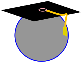 This features a graduation cap, which is an iconic symbol of academic achievement. The cap is depicted in various colors and sizes, with the most prominent one being black. It is placed on top of a blue circle that resembles a globe or a ball, giving it a unique appearance. The combination of the graduation cap and the blue circle creates an interesting visual representation of academic success.