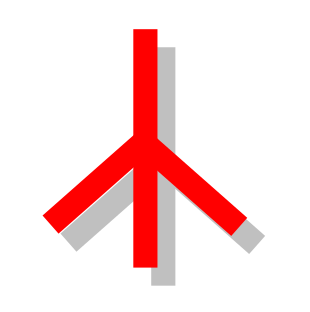 This features a red triangle with three lines, resembling an upside-down peace sign. It is displayed in a white background, making the red color stand out even more. This unique design gives it a distinct appearance compared to traditional peace signs. The triangle's shape and bold colors make it an eye-catching symbol that can be easily recognized and appreciated for its creative approach.