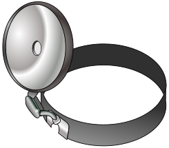 This features a close-up of an ear scope, which is a medical device used by doctors to examine the inner ear. It appears to be a 3D drawing or illustration, showcasing the intricate details of this specialized equipment. The ear scope has a silver and black color scheme, with a prominent circular object at its center. This image could potentially be used for educational purposes or as an advertisement for medical devices.