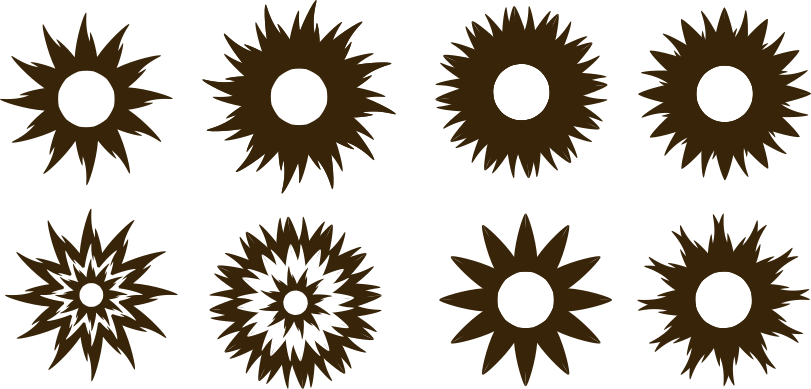 This features a collection of twelve sunflowers, each with different orientations and sizes. They are arranged in a row on the screen, creating an interesting visual effect. Each sunflower is unique, showcasing various shapes and angles that make them stand out individually. This arrangement can be used as a study aid for teachers or students to learn about the variations of a basic form, such as a sunflower, while also appreciating the intricate details in each one. The image captures the beauty and diversity found within nature's patterns.