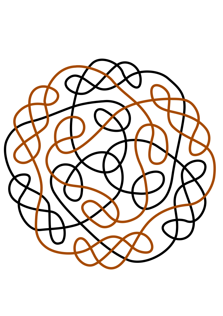 This features a large, intricate knot design in shades of brown and orange. This artistic pattern is reminiscent of Celtic style, with its intertwining lines creating an eye-catching visual effect. The knot appears to be the central focus of the image, taking up most of the frame as it fills the space from left to right. The combination of brown and orange tones adds depth and warmth to the overall design, making it a captivating piece of artwork.