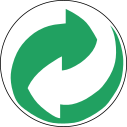 This features a green and white circular symbol with an arrow pointing inward. This symbol is commonly associated with recycling, indicating that the object or material it represents can be reused or repurposed. The color scheme of green and white gives the symbol a clean and eco-friendly appearance, which further emphasizes its connection to sustainable practices.