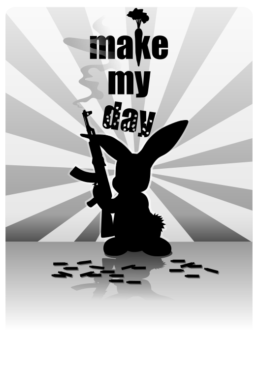 This features a cartoon bunny holding a gun, with the phrase "Make My Day" written above it. The bunny is positioned in front of the camera and appears to be the main focus of the scene. The gun held by the bunny adds an element of danger or playfulness to the image, depending on one's perspective. Overall, the image presents a unique and interesting combination of elements that capture attention and evoke various interpretations.