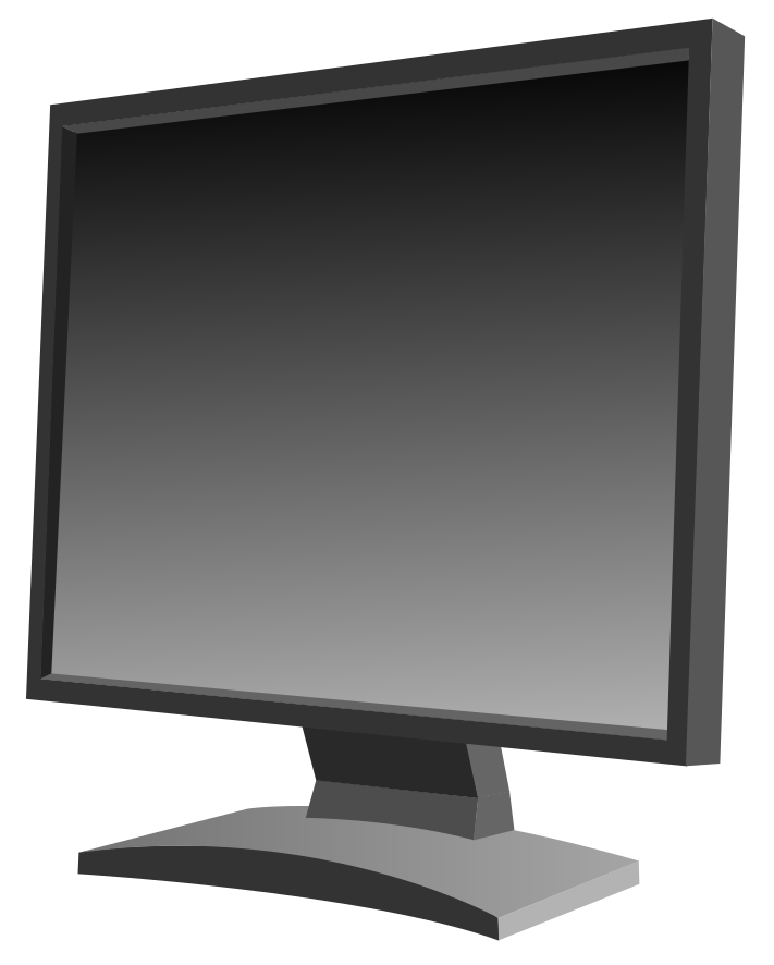 This features a computer monitor with its screen turned off. It is an LCD monitor, and it appears to be made in InkScape. The monitor has a black background, giving it a sleek and modern look. The screen itself is empty, with no visible content or images displayed on the surface. This could indicate that the computer is not currently being used for any tasks or applications at the moment.