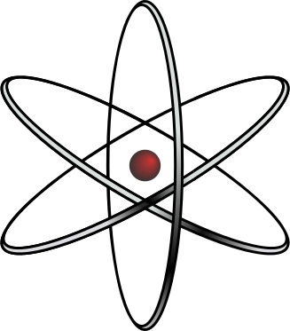 This features a stylized atom, drawn in Inkscape. It is an illustration of the atomic structure with a red dot in the center, representing the nucleus. The atom has been simplified to its basic elements, making it easy to understand and visually appealing. This design could be used for educational purposes or as a decorative piece that showcases scientific knowledge.