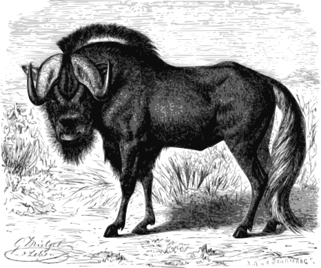 Tags: animal, antelope, biology, black & white, gnu, line art, mammal, outline, psf, wikimedia commons, zoology, bull, horn