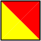 This features a square with a red and yellow background. In the center of the square, there is a large red triangle that stands out against the backdrop. This triangle has a point at one corner, giving it an interesting shape. The overall composition of the image creates a visually striking contrast between the red and yellow colors, making it an eye-catching piece of art or design.