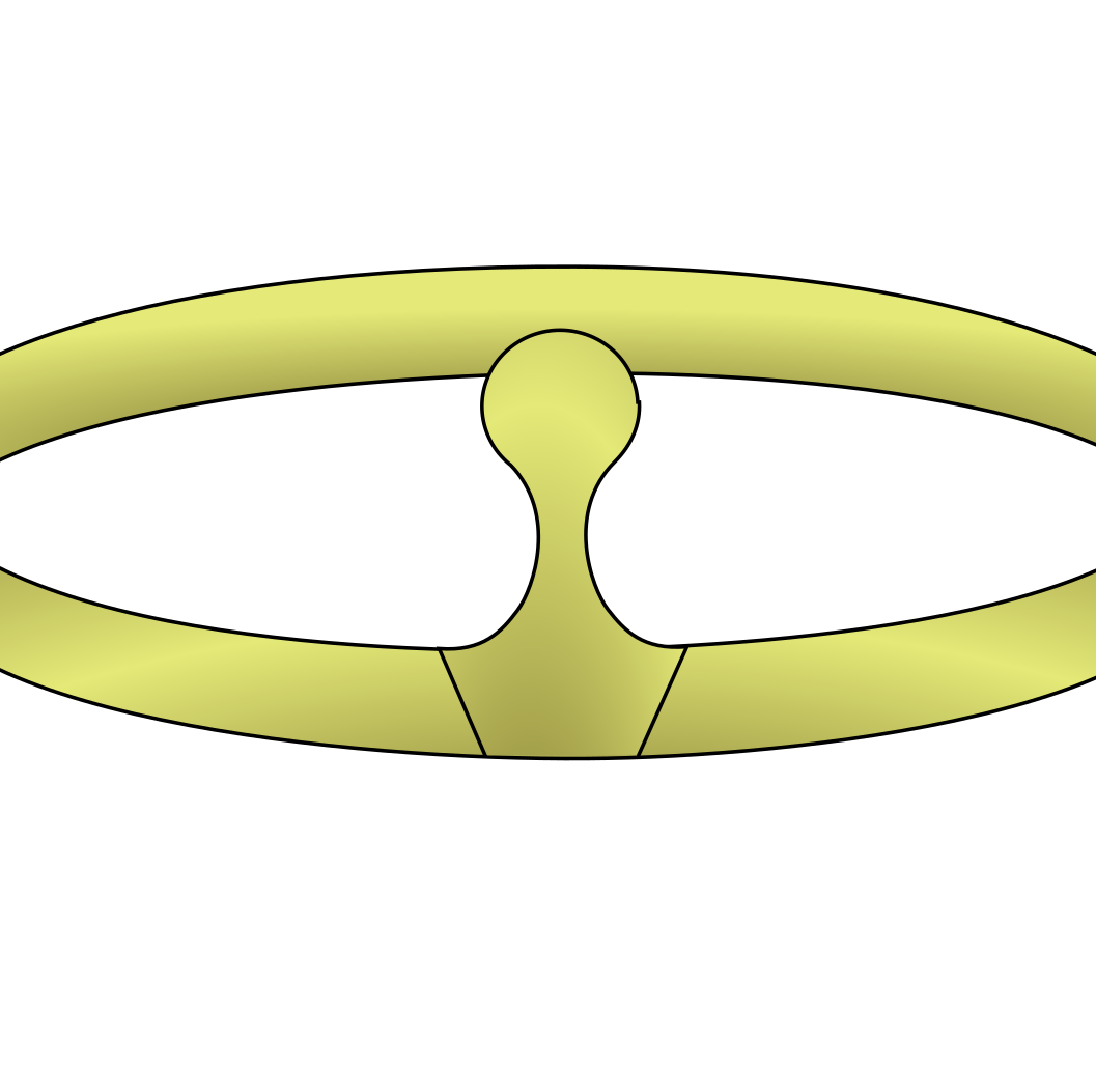 This features a close-up of an old, golden steering wheel. It is a circular object with a central hole in the middle and two screws on either side. The gold color gives it a vintage appearance, suggesting that it might be from an older vehicle or a classic car. The intricate design of the steering wheel adds to its charm and makes it stand out as a unique piece of automotive history.