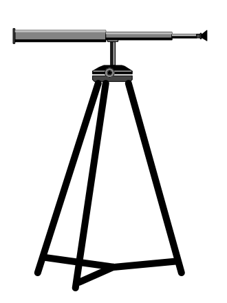 This features a black and white drawing of an old telescope on its stand. The telescope is positioned at the top left corner of the image, while the stand extends from the bottom left to the center right area. The drawing captures the essence of the telescope and its stand, creating a visually appealing representation of this classic scientific instrument.