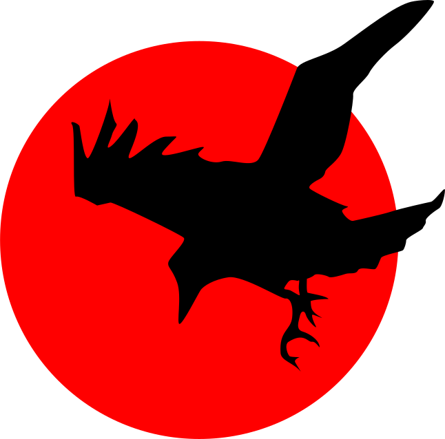 This features a red circle with an outline of a bird, possibly a raven or a crow. The bird is flying through the air and appears to be in motion. The red circle surrounding the bird adds a striking visual element to the scene. This artistic representation could evoke feelings of freedom, movement, or even symbolism related to the bird's journey.