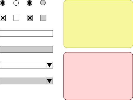 This displays a variety of GUI widgets designed for use in web design wireframes. These include buttons, text boxes, and sliders, all arranged on a pink background. There are three buttons visible in the scene, with one located towards the left side, another near the center, and the third one positioned slightly to the right. A text box can be seen in the middle of the image, while two sliders are placed closer to the right side. The layout of these GUI widgets suggests a user-friendly interface for web design purposes.