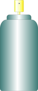 This features a close-up of an aerosol can, which is a type of spray container. This particular can has a blue and white color scheme with a yellow top. It appears to be empty, as there are no visible contents inside the canister. The focus on this object highlights its design and structure, making it an interesting subject for viewers.