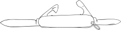 This is a black and white drawing of an open Swiss Army knife. It features various tools, including scissors, a knife, and possibly other utensils. The drawing captures the essence of the Swiss Army knife's versatility and functionality. The artwork showcases the intricate details of each tool within the knife, making it an interesting visual representation of this iconic item.