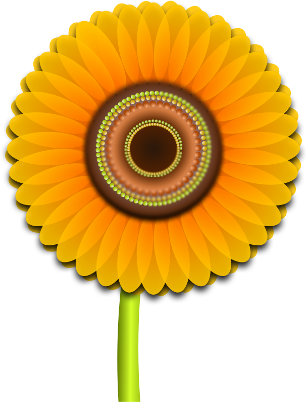 This features a large, bright yellow sunflower with a brown center. It is surrounded by a circle of black dots that add an interesting visual element to the flower's design. The sunflower appears to be in full bloom and stands out against its surroundings. The close-up view of the flower highlights its vibrant colors, making it an eye-catching focal point in the image.
