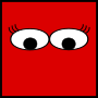 This features a large, red square with two black eyes and eyelashes. The eyes are positioned in the center of the square, giving it an expressive appearance. The eyelashes are drawn on to add detail and depth to the design. This artwork could be used for various purposes such as digital media or public domain images.