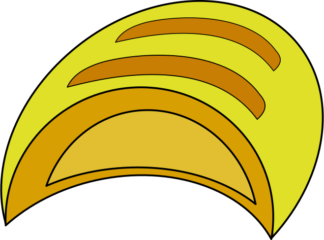 This features a yellow and brown cartoon sun with a curved shape, resembling the top of a wave. It is positioned in the upper left corner of the picture, covering almost half of the frame. The sun's rays are depicted as a series of lines extending outwards from its center, creating an interesting visual effect. This creative representation of the sun adds a unique and playful touch to the image.