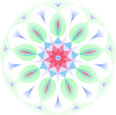 This features a large, colorful circle with an intricate design. The circle is filled with various shapes and colors, creating a visually appealing pattern. There are multiple green and blue elements in the design, as well as some red accents. The overall effect is that of a vibrant and artistic piece of artwork.