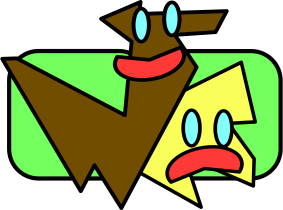 This features a cartoon-like drawing of two dogs, one brown and the other yellow. They are positioned in such a way that they appear to be looking at each other with sad expressions on their faces. The brown dog is located towards the left side of the image while the yellow dog occupies the right side. The overall composition creates an interesting visual effect as if the two dogs are interacting or communicating with one another through their facial expressions.
