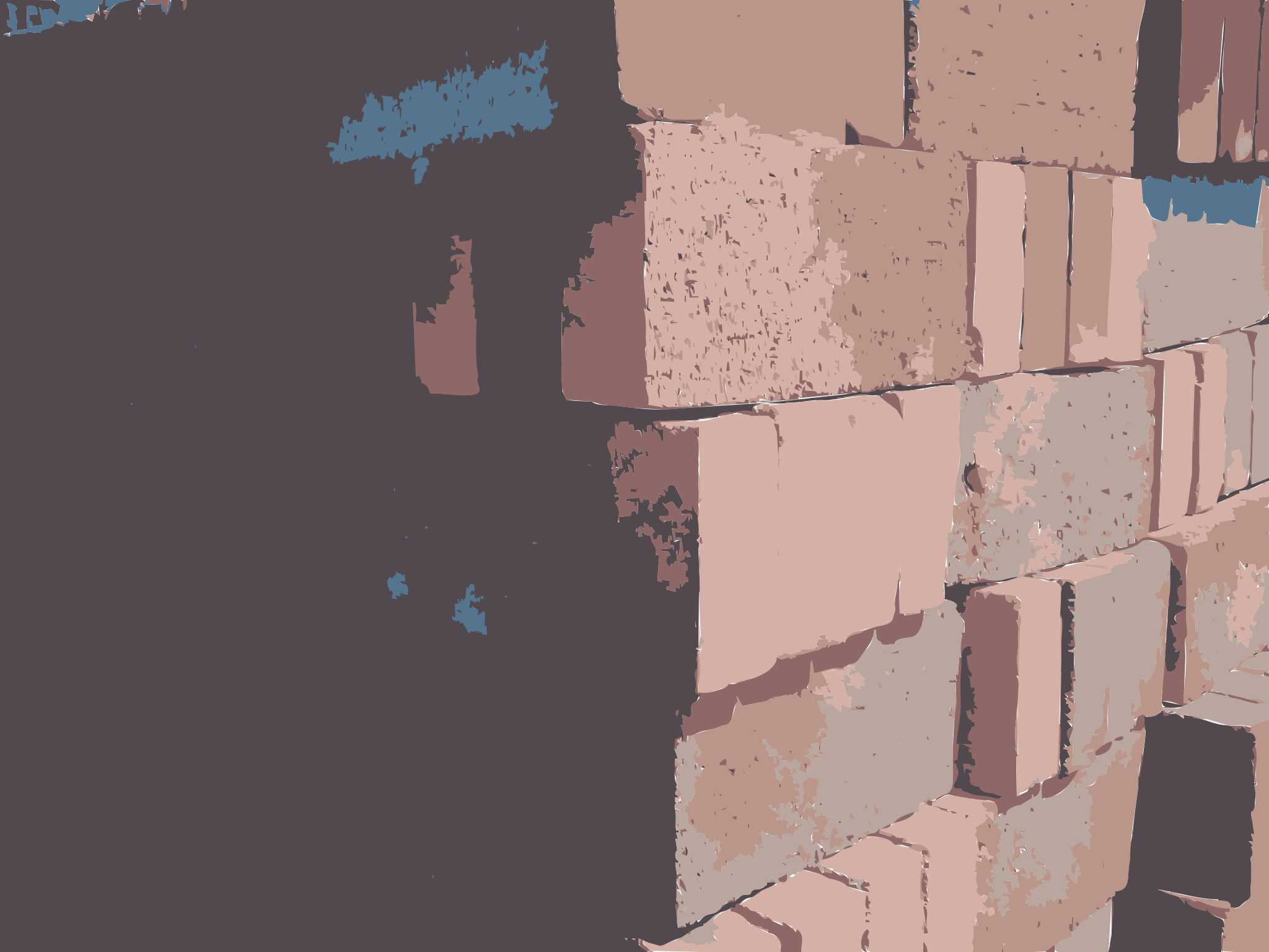 This features a brick wall made of various bricks. The bricks are arranged in different shapes and sizes, creating an interesting visual effect. Some of the bricks are larger than others, while some are smaller or even broken. The overall appearance of the brick wall gives it a unique texture and character.