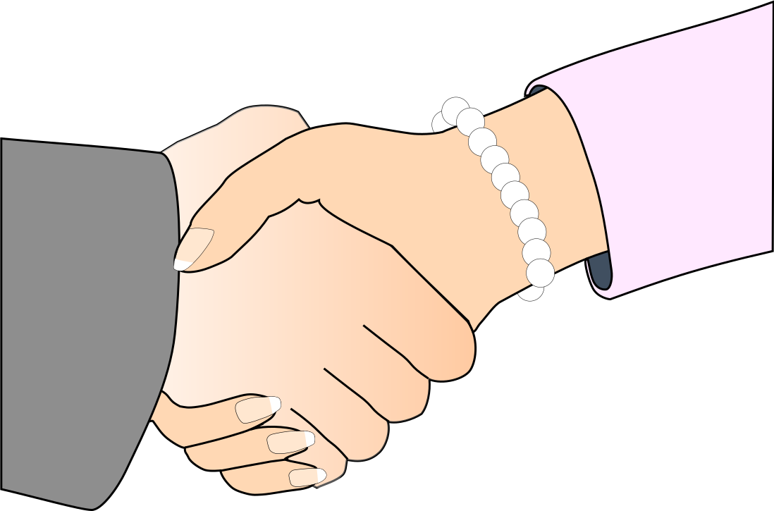 This is a completely free image Handshake with Black Outline (white man and woman, freshwater pearl bracelet) that you can download, post, and use for any purpose.