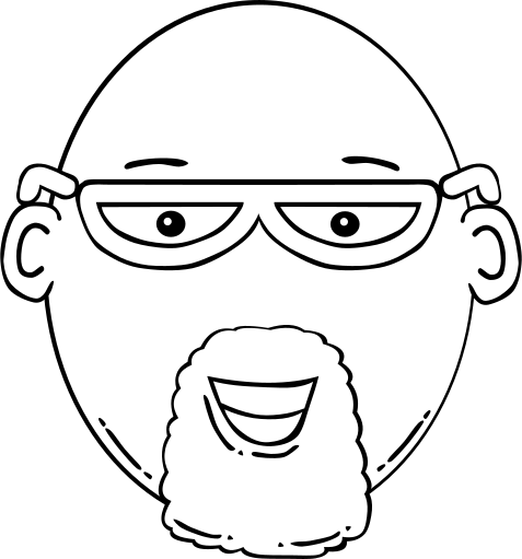 This features a cartoon drawing of an older man with glasses, wearing a beard. He is smiling and appears to be happy. The drawing is in black and white, giving it a classic feel. The man's facial expression and the overall composition of the drawing create a sense of warmth and friendliness.
