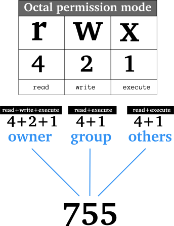 This displays a diagram that explains the octal permission mode. It shows various modes such as read, write, execute and owner group others. There are also different numbers associated with each of these modes, including 4+1, 4+2, 4+3, 4+4, 4+5, 4+6, 4+7, 4+8, 4+9, 4+10 and 4+11. The diagram is accompanied by a list of the numbers in each mode, making it easier to understand the concept.