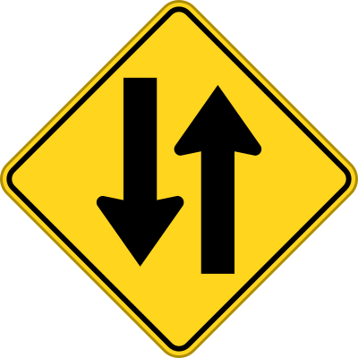 This features a yellow and black traffic sign with an arrow pointing upwards. This sign is likely meant to indicate that the road or direction ahead goes uphill, alerting drivers to prepare for changes in elevation. The sign's design is simple yet effective at communicating its intended message to motorists.