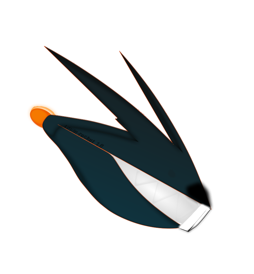 This features a unique and creative design that combines the shape of an orange with the body of a bird. The bird's body is black, while its head is painted in a vibrant shade of orange. This artistic representation creates an interesting visual effect, as it appears to be a blend between a rocket and a rabbit. The image showcases the artist's ability to merge different elements into one cohesive piece, making for an intriguing and eye-catching design.