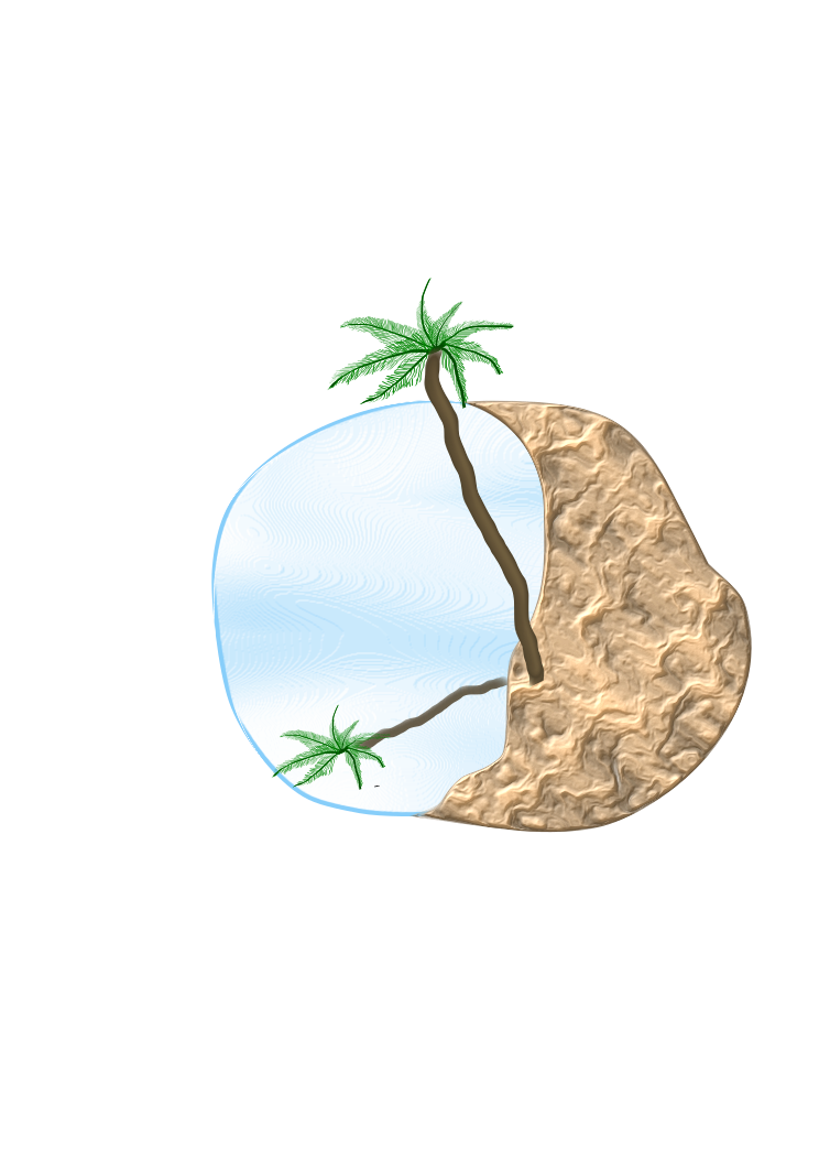 This features a unique and creative illustration of an island with a palm tree growing out of it. The island is depicted as a sphere, giving the impression that it's floating in the air or on water. A single tree branch sticks out from the center of the island, creating a sense of depth and dimension to the scene. This artistic representation showcases an interesting perspective on the concept of an island with a palm tree growing directly from its surface.