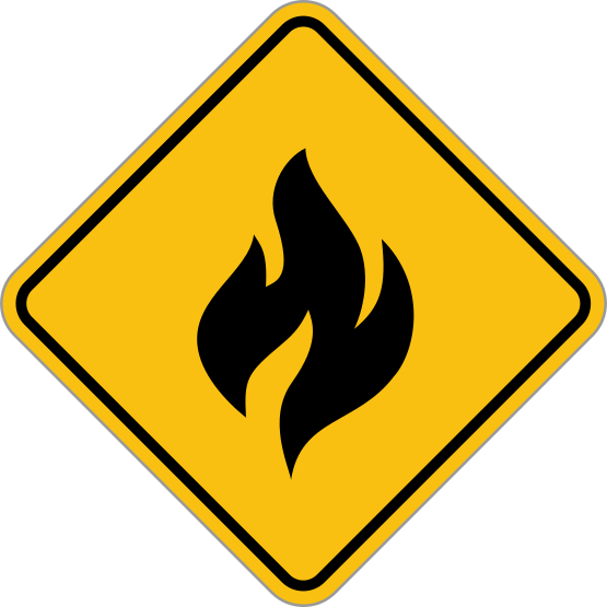 This features a yellow and black fire sign, which is likely meant to warn people of potential hazards or dangers. The sign has a flame design on it, with the flames being in black and yellow colors. This eye-catching design ensures that the sign can be easily seen by those passing by, making it an effective warning tool for drivers and pedestrians alike. The fire sign is placed against a white background, which further emphasizes its importance as a safety measure.