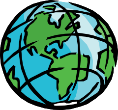 This features a colorful, hand-drawn illustration of the Earth. It is a large, round globe with various longitude and latitude lines visible on its surface. The drawing captures the essence of our planet, showcasing its diverse land masses and oceans. The artistic representation of the Earth provides an engaging visual for those interested in geography or simply appreciating the beauty of our home.