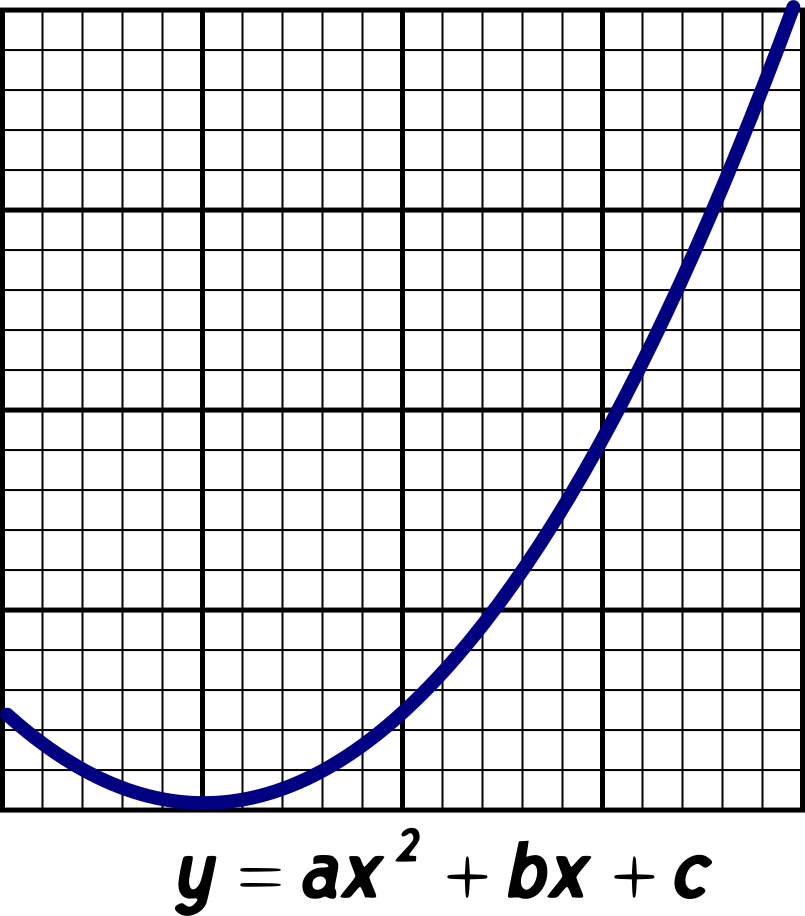 This displays a graph of a parabolic function on a grid. The x-axis and y-axis are clearly marked, with the x-axis running horizontally across the top of the graph and the y-axis running vertically down the left side. The parabolic curve is represented by the blue line that extends from the bottom left corner to the top right corner of the graph. This type of function is commonly used in mathematics, particularly in calculus, to model various physical phenomena such as motion or growth.