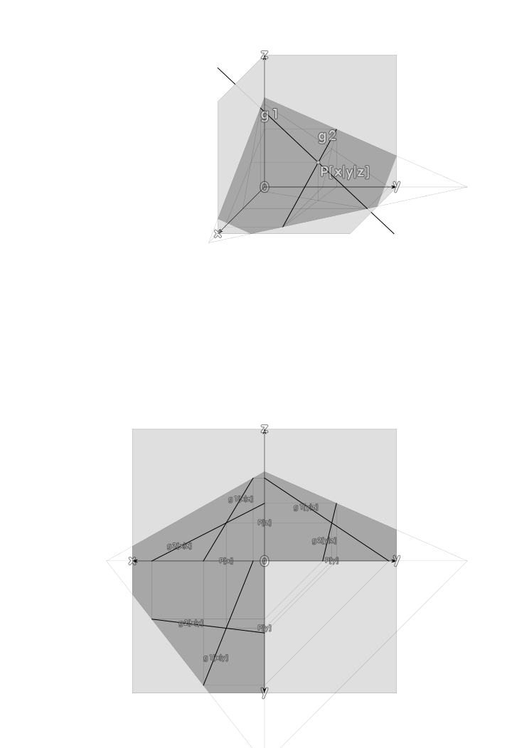 This features two different geometric shapes, one on the left and another on the right. Both shapes are made up of triangles, with each triangle having a unique orientation. The left shape is composed of four triangles, while the right shape consists of five triangles. These shapes appear to be part of an artistic drawing or design project.