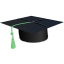 This features a black graduation cap with a green tassel hanging from it. The hat is prominently displayed in the foreground, taking up most of the frame. The tassel on the cap adds a touch of elegance and sophistication to the overall appearance of the graduation attire. This type of hat is commonly worn during graduation ceremonies or other formal events, symbolizing academic achievement and success.