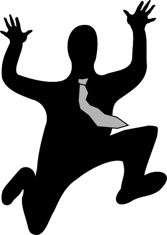 This features a silhouette of a man wearing a tie and holding his hands up in the air. He appears to be jumping or running, possibly celebrating something. The black and white nature of the image adds an artistic touch to the scene. The man's posture suggests that he is energetic and enthusiastic about whatever event or situation he is involved in.