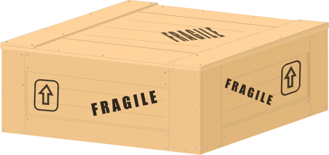 This features a large cardboard box with the word "Fragile" written on it. This box is likely used for shipping purposes, as it is designed to protect fragile items during transportation. The box has a handle and is brown in color, making it suitable for various types of shipments. The writing on the box indicates that the contents inside are delicate and should be handled with care.