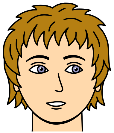 This features a cartoon-style face with brown hair and blue eyes. It appears to be a man's face, but the artist may have had some difficulty in accurately depicting the subject. The facial features are drawn in a simple manner, making it easy for viewers to recognize the individual. The image is presented in a colorful style, with the brown hair and blue eyes being the most prominent colors.