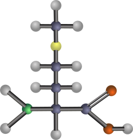 This features a three-dimensional model of a molecule, likely an amino acid. It is composed of multiple carbon atoms connected by various bonds to form the structure. There are also several hydrogen and oxygen atoms present in the molecule, which are represented by different colors. The molecule appears to be non-polar and hydrophobic, as it does not have any polar bonds or hydrogen bonds. This model is likely drawn using a computer program such as Inkscape, showcasing the intricate details of the molecular structure.