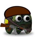 This features a cartoon character wearing a camouflage hat and holding two guns. The character appears to be a cute, anthropomorphic representation of an army soldier. The guns are prominently displayed in the character's hands, with one gun on each side. The character is positioned towards the left side of the image, while the guns are placed closer to the center and right side. This playful depiction of a soldier adds a touch of humor and creativity to the scene.